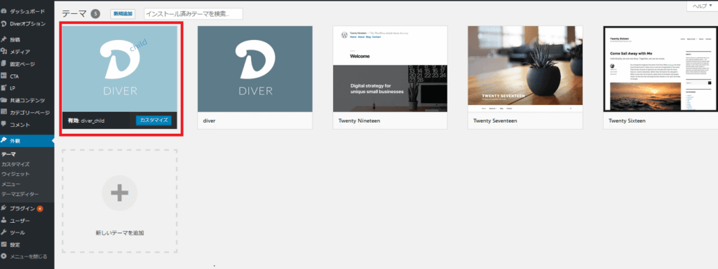 【diver_child】子テーマを有効化していれば、カスタマイズ内容はそのままの状態でアップデートすることが可能です。